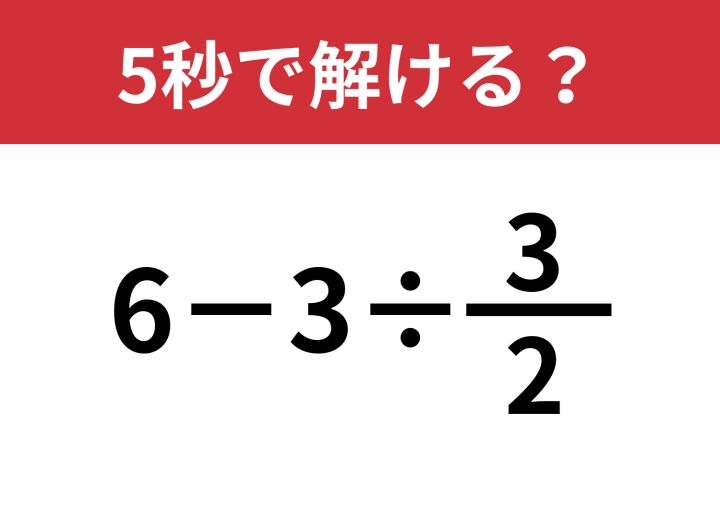 分数の割り算ってどうやるんだっけ?「6−3÷(3/2)」5秒で解ける?
