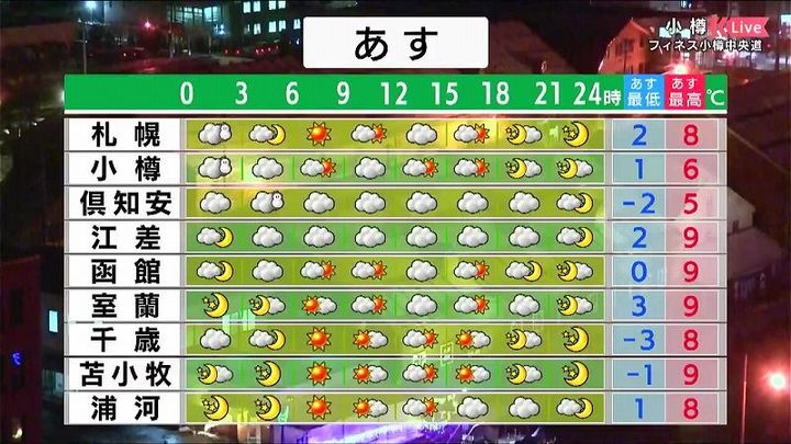 背景は7日午後5時10分ごろの小樽情報カメラ