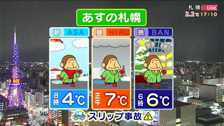 8日の札幌です!朝昼晩の天気をもんすけでお伝えします!