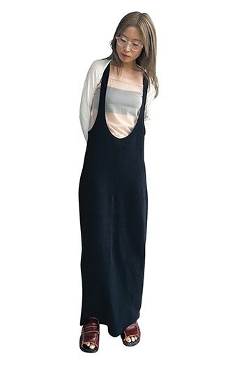 「ロングからボブにしたり、前髪をつくったりとスタイルが変わっても、カットラインはぱつっと揃えるのがお決まり。毛先のラインがまっすぐだと辛口なムードがきわ立ってモノトーンの装いにも合わせやすい」(草野桜子さん)