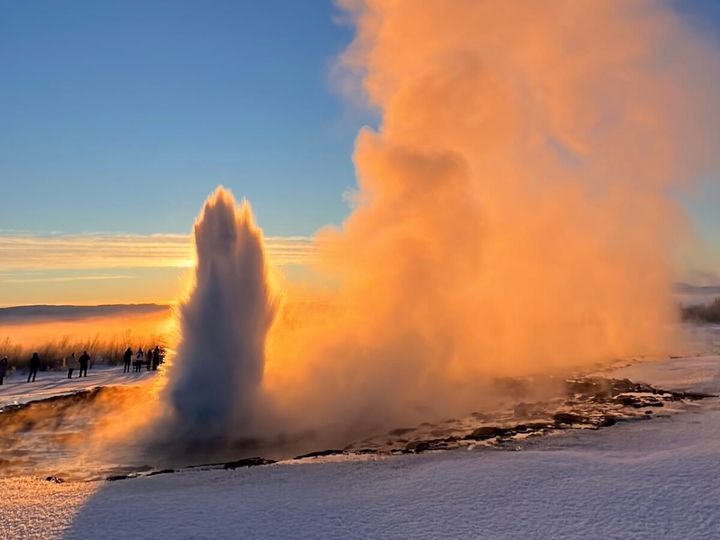 こちらは数分ごとに10mから40mの熱湯が地上から噴出するので、今か今かとカメラを構えながら待っている観光客がたくさん。噴き出す熱湯は、ドーン! という音ともに地球の鼓動を感じられる瞬間。もちろん危ないので、ロープより先には行かないようにご注意を。近くで見るのもよし、少し小高い丘に登って複数ある間欠泉を眺めるのも素敵です。ここには、カフェやお土産を販売するエリアも多いので休憩スポットとしても最適です。