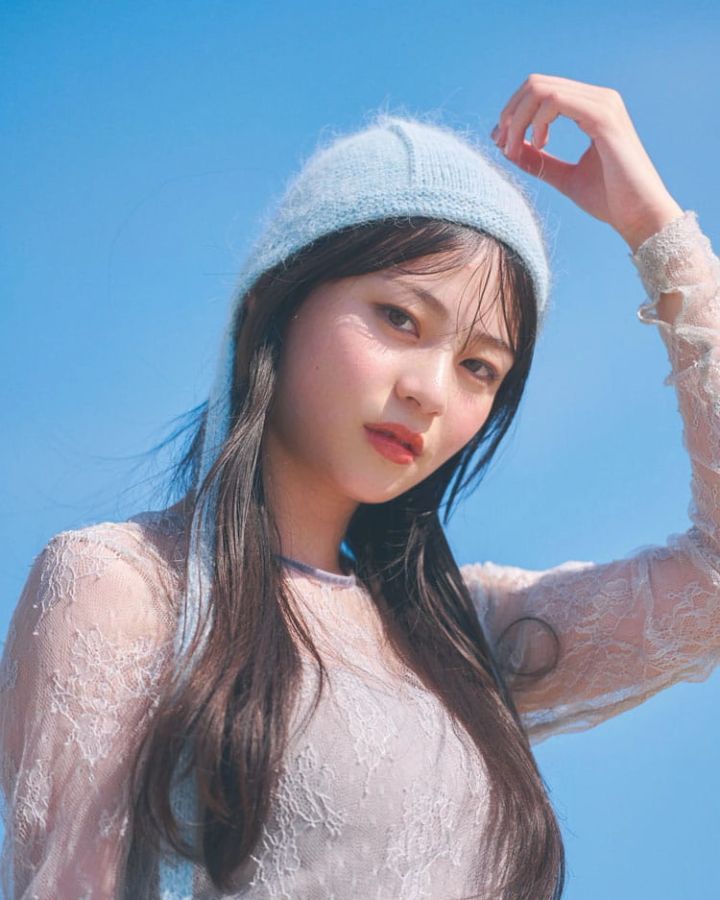 実は小顔に効くトレンド帽。タイトなシルエットのニット帽は浅くかぶるのが小顔見えのポイント♡