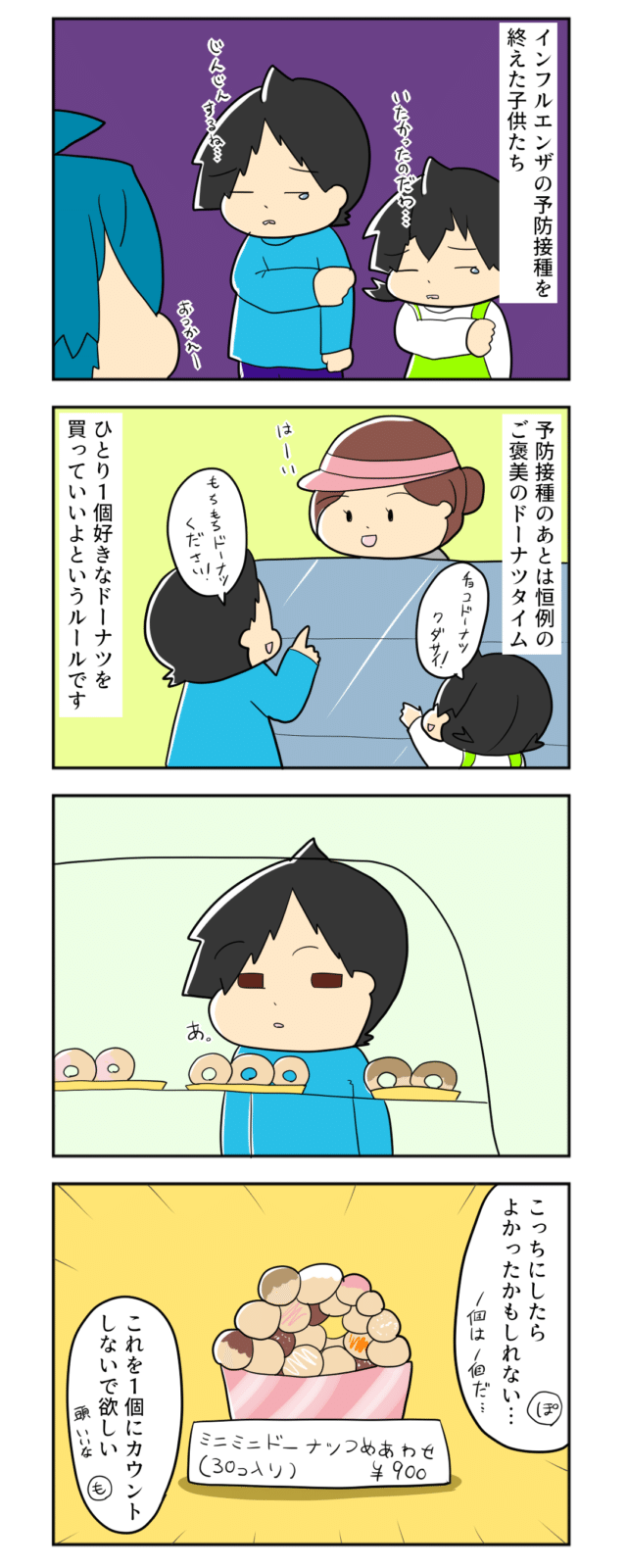 注射を頑張ったご褒美は好きなドーナツ1個。詰め合わせを選べばよかったと後悔する頭脳派な息子に母は異議あり!