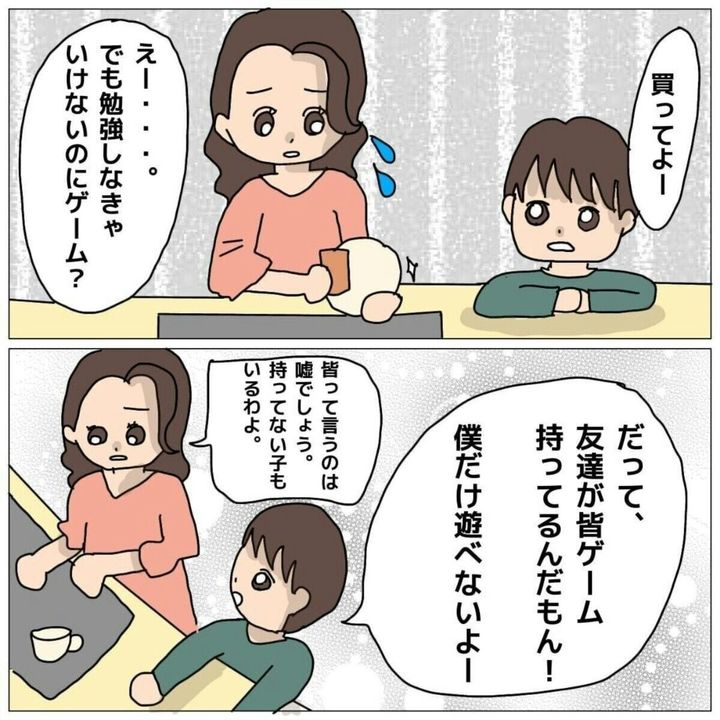 小学校に入学したら「ゲームがほしい」と言い出しす息子。ママは「勉強をしてほしいしまだ早いかな」と思い、せがまれてもゲーム機を買い与えずにいたそうです。