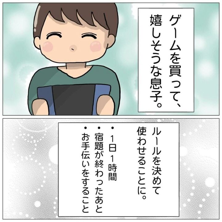 念願かなってゲームを買ってもらった息子。「1日1時間」「遊ぶのは宿題の後」「お手伝いをすること」というルールを決めて遊ばせることにしましたが、そのルールはなかなか守られることがありません。