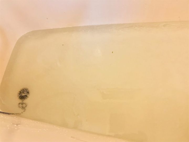 浴槽にオキシ溶液を作り、カーテンを2時間漬ける