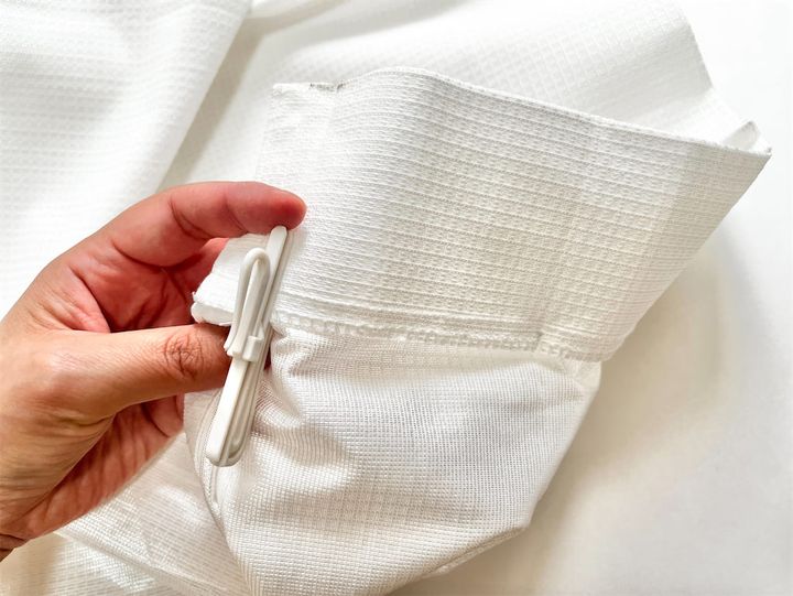 まずは、カーテンフックをすべて外し、洗濯タグを確認します。