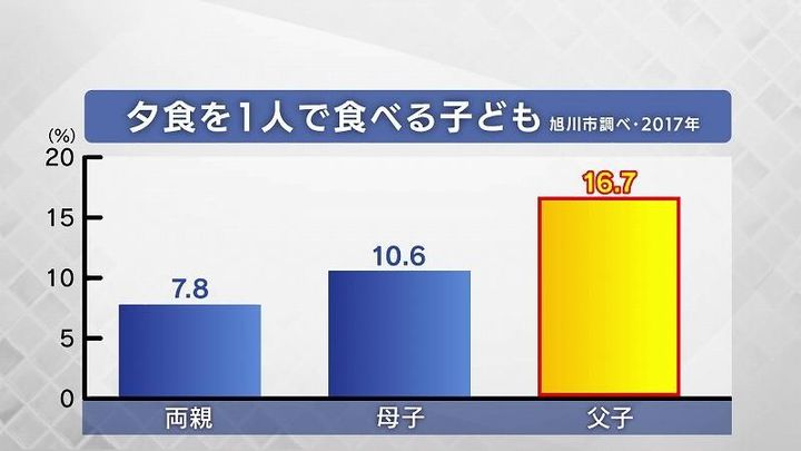 旭川市の調査によりますと、子どもが1人で夕食を食べる家庭は、両親がいる世帯で7.8%。