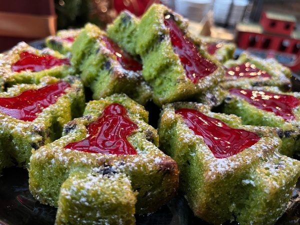 カシスのジェリーをのせた抹茶味のフィナンシェ「抹茶のホリデーツリー」