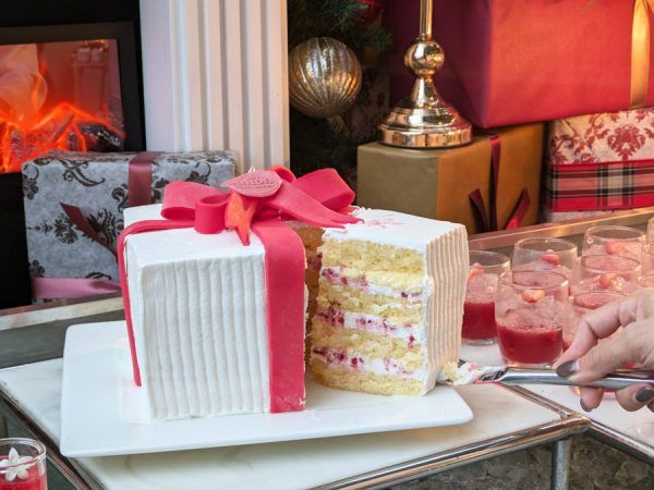 しっとりと焼いた生地にラズベリーやブルーベリー、いちごをふんだんに使用し、クリームチーズのフロスティングを加えた「クリスマスレッドベルベットケーキ」