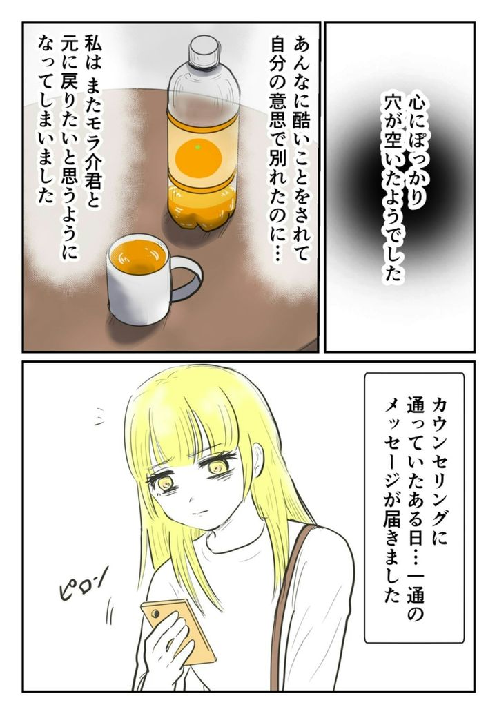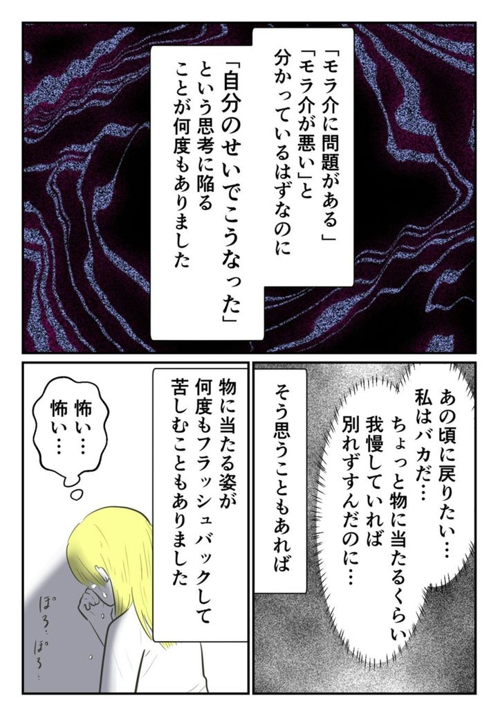 DV彼氏と別れることに成功したキナコでしたが、その後、激しい「DV後遺症」に悩まされます。「モラ介とよりを戻すべきなのでは…」と考えてしまうこともあるほど。