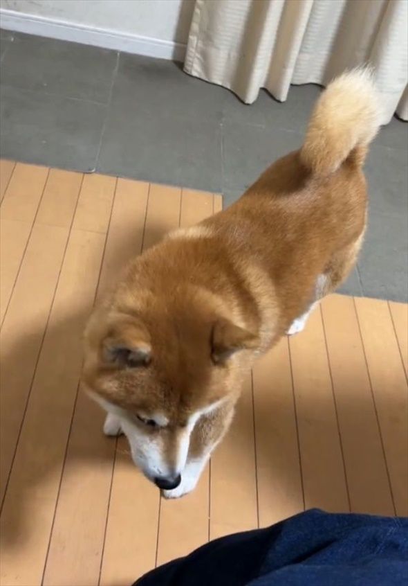 飼い主さんにナデナデしてもらいたい柴犬。 しかし、積極的とはとても言えないアピールする様子が反響を呼んでいます。