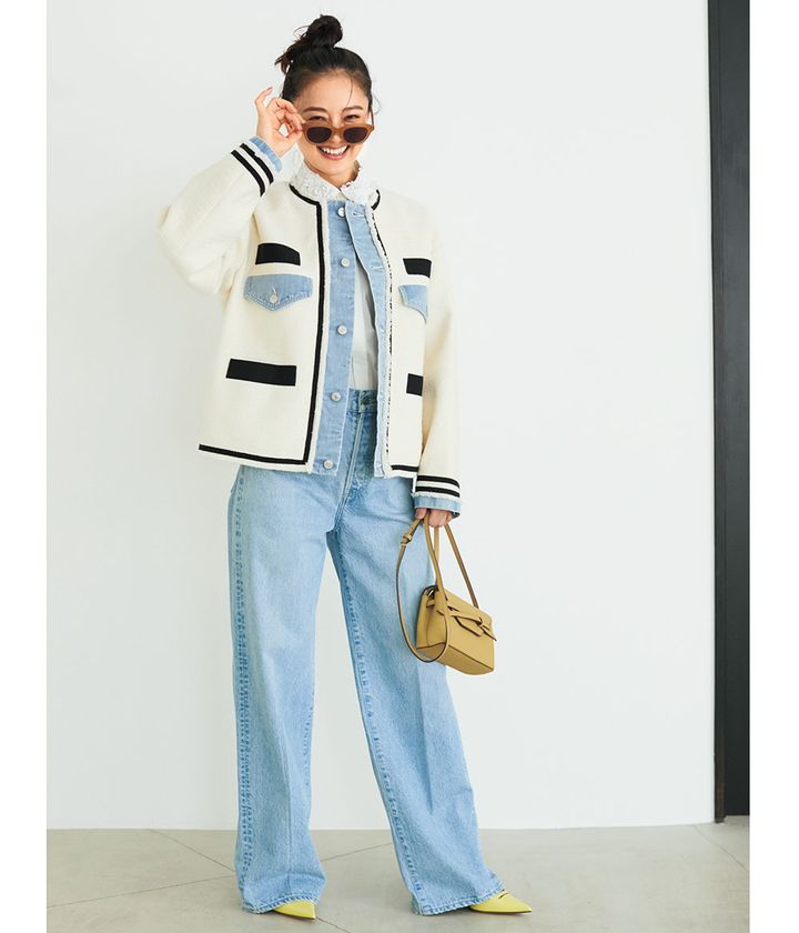 良質なクオリティに定評のある、国内デニムメーカーで生産されたデニムを使用。デニムコンビのツイードジャケットは1枚で甘二ッシュが完成。