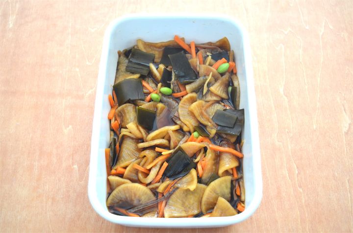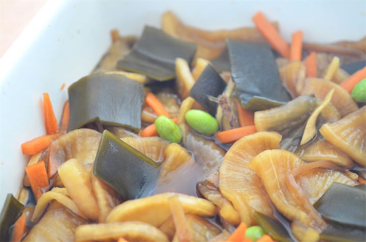 野菜のポリポリした食感に加えて、するめや昆布などは噛めば噛むほど味が出てくるので、ご飯が進む進む!