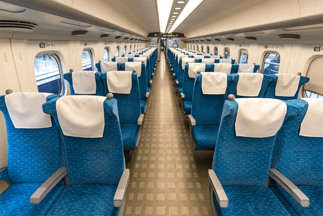 東海道新幹線の座席配置は、通路を挟んでABC席とDE席にわかれています。窓側席はA席とE席になりますが、富士山を見るにはE席を選ぶこと。E席であれば車両はどこでもOKです。混んでいるとE席はわりとすぐ埋まってしまうので、早めにおさえるのがおすすめ!