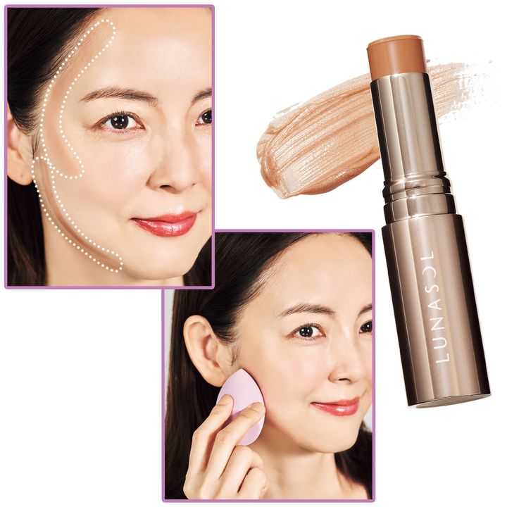 絶妙な色設計で肌に溶け込み、ナチュラルな陰影を演出。なめらかなテクスチャーで描きやすい。ルナソル コントゥアリングスティック 01 ¥3,300 (カネボウ化粧品)