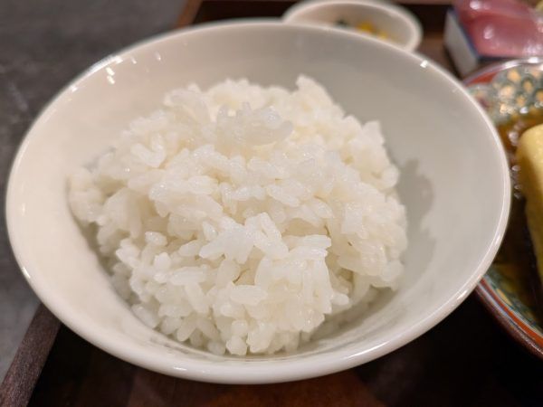 おぉ~、これは1000円以上の価値のある定食です。キレイですね。名物のだし巻きと牛肉のしぐれ煮に、お造り・小鉢・ご飯・汁物付きです。ご飯は大盛り無料です。