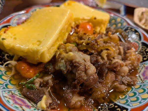 卵黄と牛しぐれ煮を絡めて食べてくださいとのことなので、遠慮なく絡めさせていただきます。