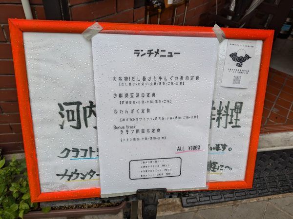 各1000円のわかりやすいメニューです。