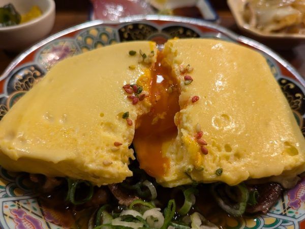 卵黄の入っただし巻きは薄味なので、絡めると丁度いい!そのままでも、ご飯と一緒でもおいしいです。