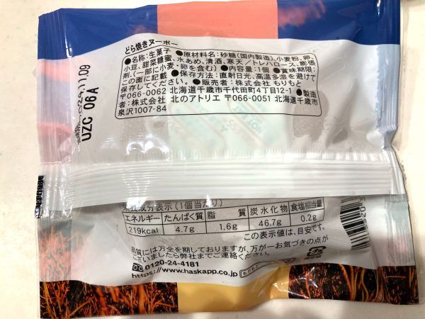 パッケージ裏面はこんな感じ。一つあたりのカロリーは219kcalです。