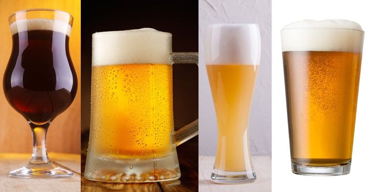 左から、チューリップグラス、ビールジョッキ、ヴァイツェングラス、パイントグラス / Credit:Canva