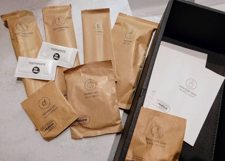 先の「ウェルカムエリア」でも少し触れたように、アコー・グループは「脱・使い捨てプラスティック」に力を入れていて、客室のアメニティはリサイクル素材や木製のものを多く使っています。包装も紙製だったりと環境に配慮しています。