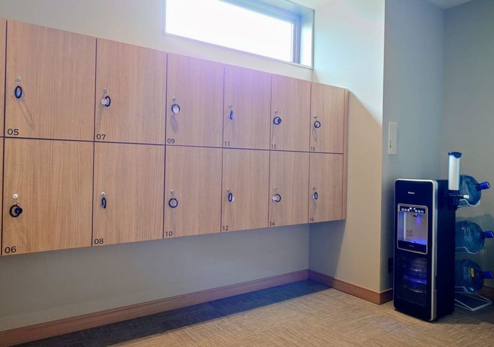 脱衣所は16個のロッカー、入浴前後の水分補給のためにウォーターサーバーもあります。