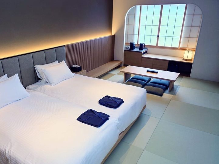 奈良文化や自然を思わせる和の要素をさりげなく取り入れたモダンな内装(写真は「スタンダードツイン」)。