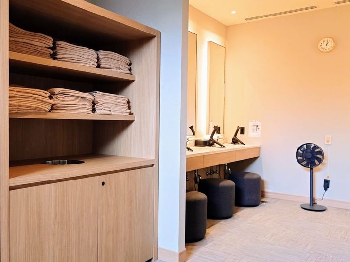 タオルもあって、5席あるドライヤールームではゆったりと身支度を。