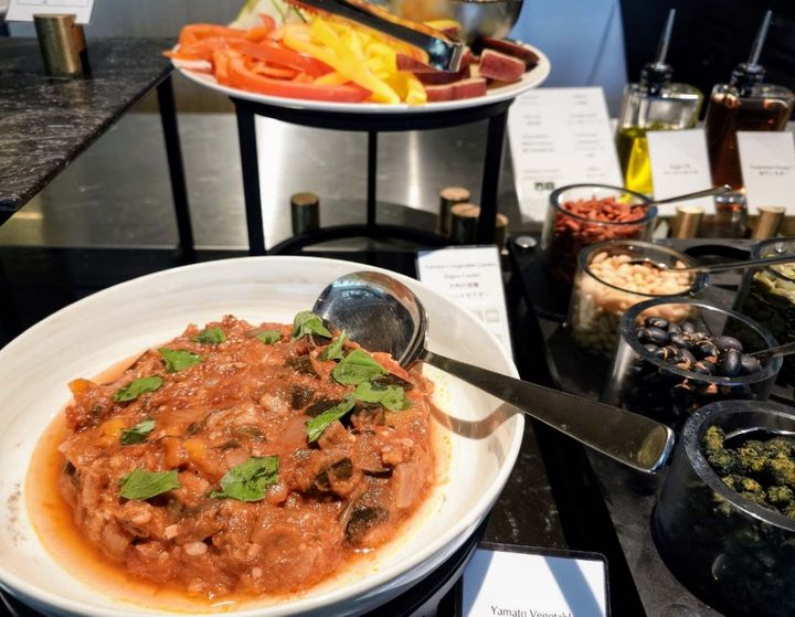 朝食と同じくサラダバーも豊富で、野菜をキャラメリゼして味が凝縮した「大和野菜のカポナータ」や「大和野菜のバーニャカウダ」などと野菜尽くし!