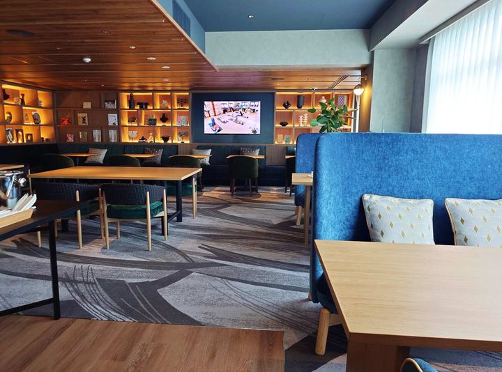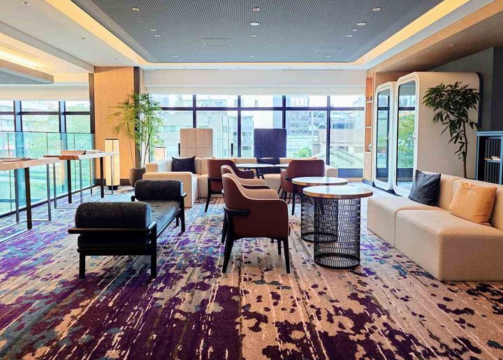 テラスの隣には、スイートルームと8〜9階の宿泊客限定で7時〜21時30分まで利用できる「エグゼクティブラウンジ」があります。PC作業もできる落ち着いた雰囲気です。