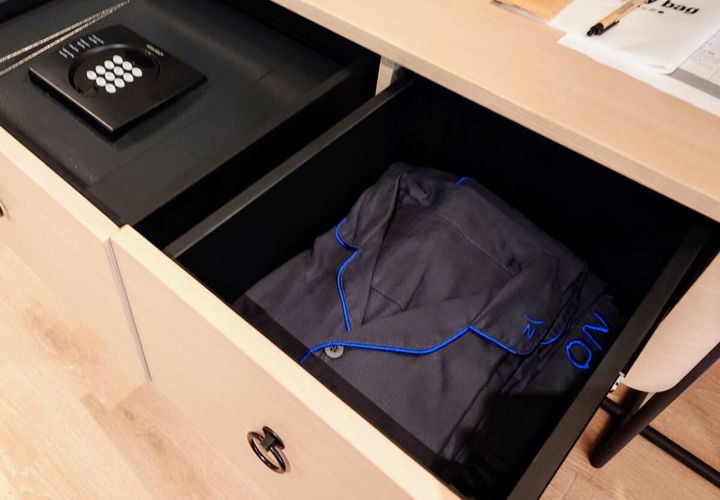 和箪笥ラックの引き出しにはパジャマ(上下セット)が入っています。