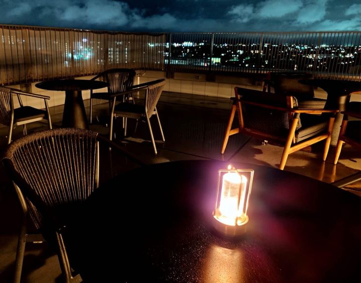 ルーフトップテラスではドリンクなども注文できて、夜は夜景の大パノラマを堪能。