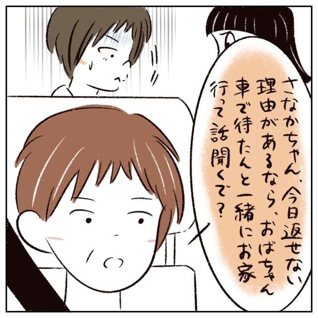 「さなかちゃん、今日返せない理由があるなら、おばちゃん車で待たんと一緒にお家行って話聞くで?」