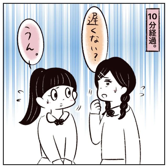 10分経過。ちょっと遅いかな、と思い始めた2人です。