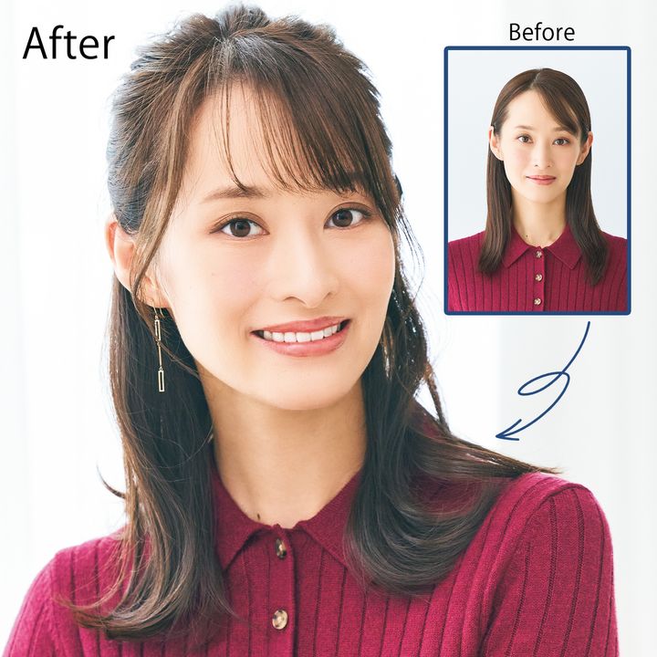 ハーフアップした髪を引き出しトップに高さを出して−5歳!