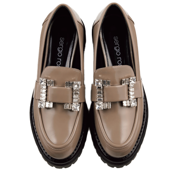 オトナミューズ的スーツ攻略法の最適解は、「マニッシュにまとめる」。ここから導き出した答えは足元=ローファー。足元にボリュームを出すと、こなれて見える。ベージュローファー¥185,900(セルジオ ロッシ/セルジオ ロッシ カスタマーサービス)