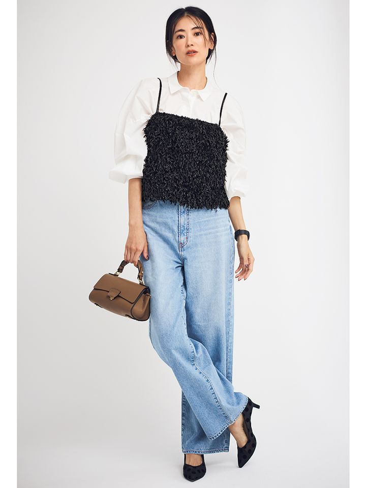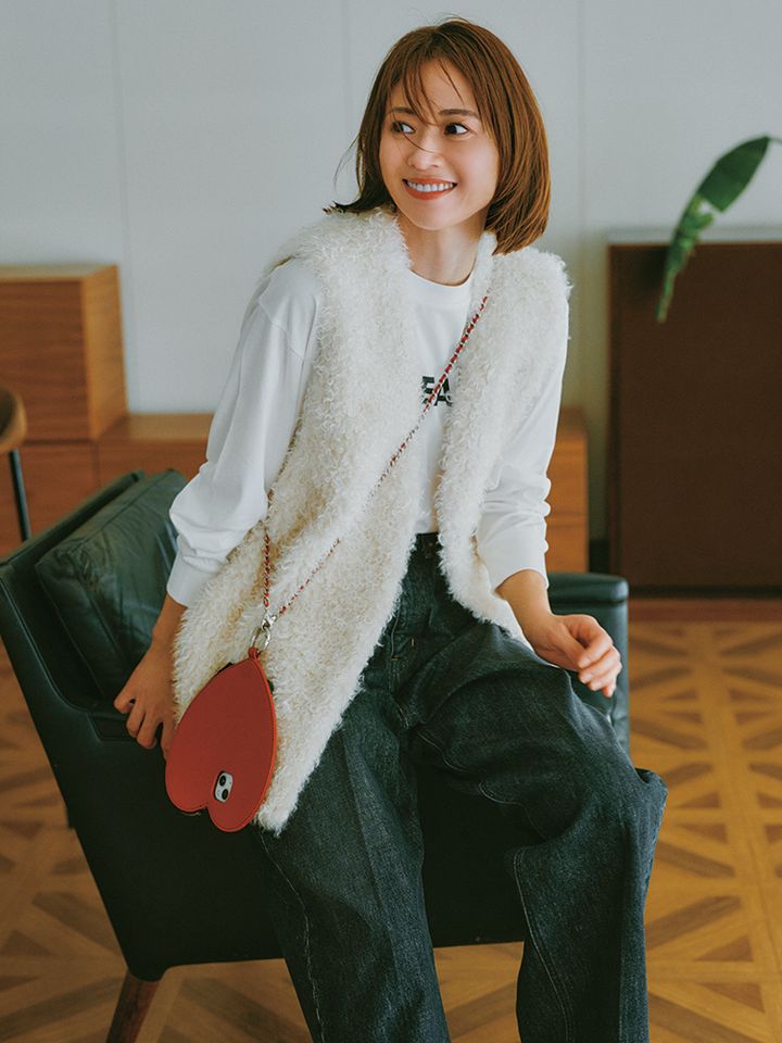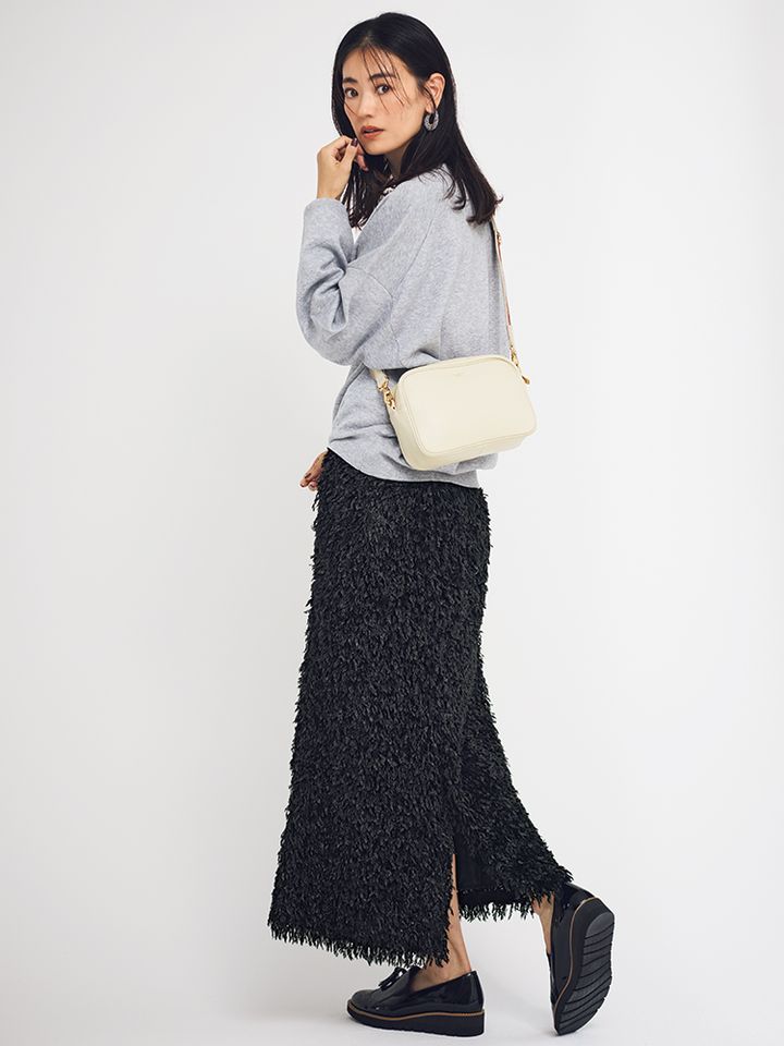 この秋冬注目度大のシャギー素材アイテムは、手持ち服に1点取り入れるだけで一気に華やかに。手持ちのブラウスやカットソー、タートルネックニットにビスチェ風にONすればフレッシュな可愛さが手に入ります。タイトスカートはスウェットなど案外スポーティなトップスとも好相性。トップスとセットで着れば今年らしさ満点です。