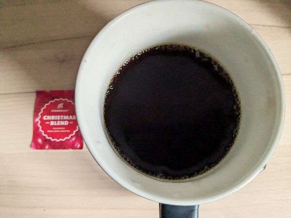 クリスマス限定のブレンドコーヒー。ダークチョコのような苦みとナッツを思わせる香ばしさのあるコーヒー。コク深く、ビターな味わいのコーヒーなので、ミルクと合わせやすいです。