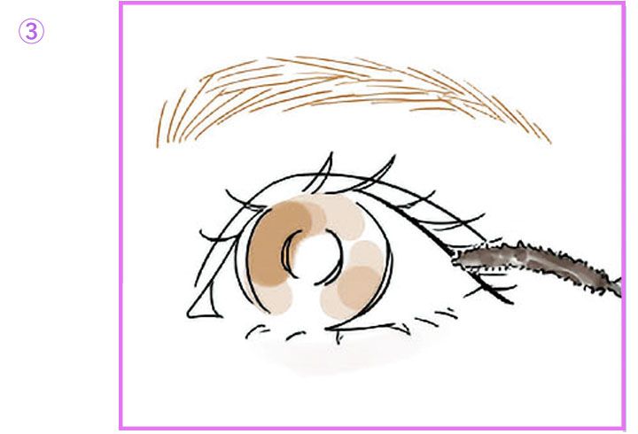 目頭・目尻のまつ毛や下まつ毛は、ブラシの先端で1本1本塗る。