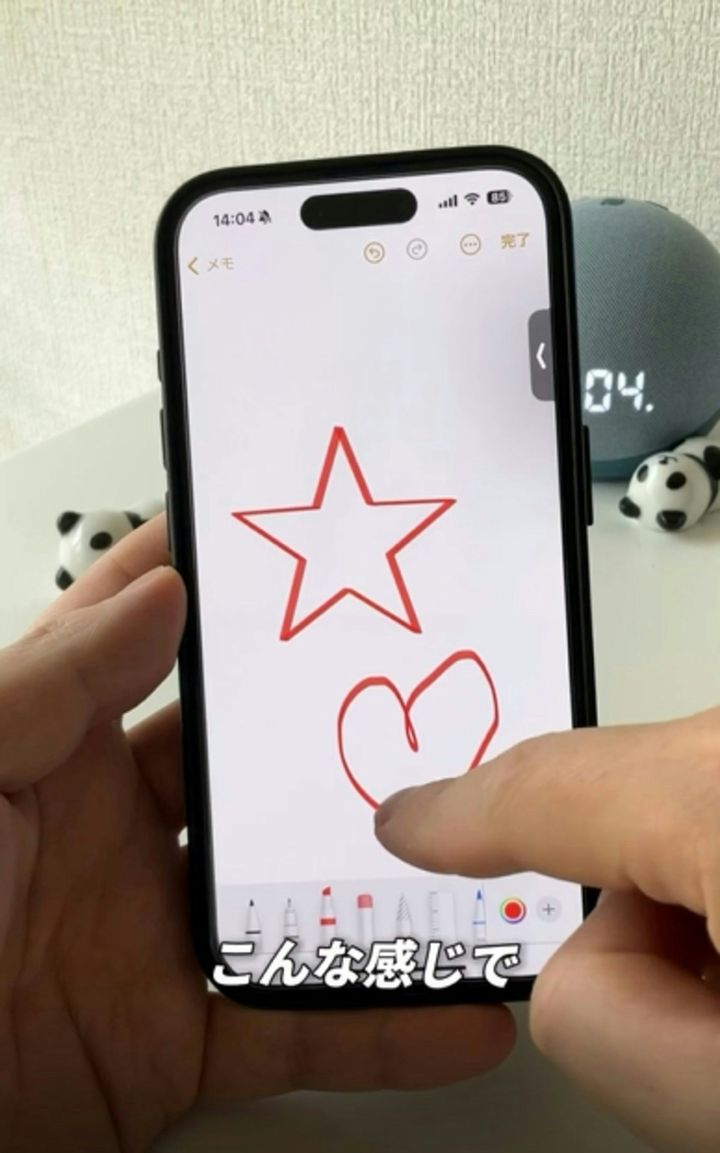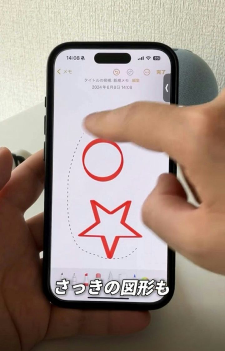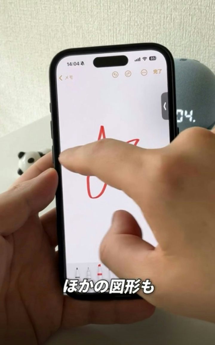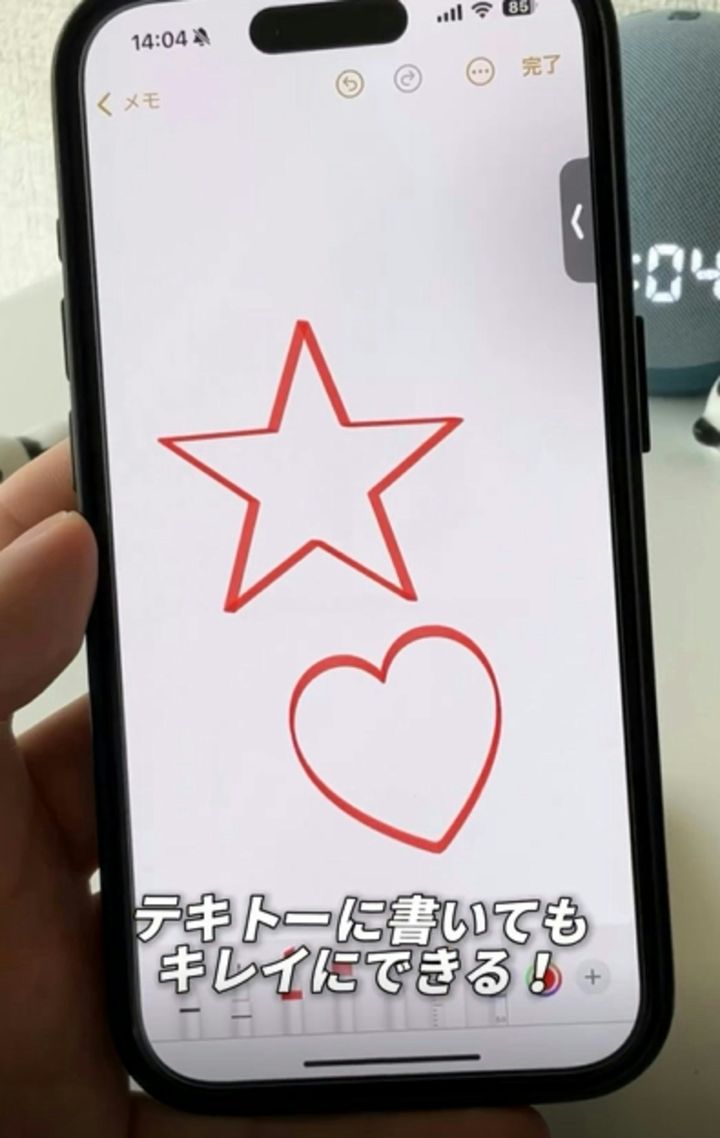 もちろん、丸だけでなく、三角形や星形、ハート形などどのような図形でも見事に修正されました。アプリ上でマークを付けたいときに手書きだとうまく書けなくても、長押しすればこの通りにきれいな形に。ぜひ試してみてくださいね。