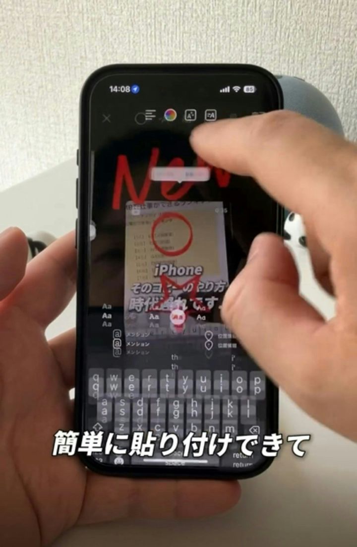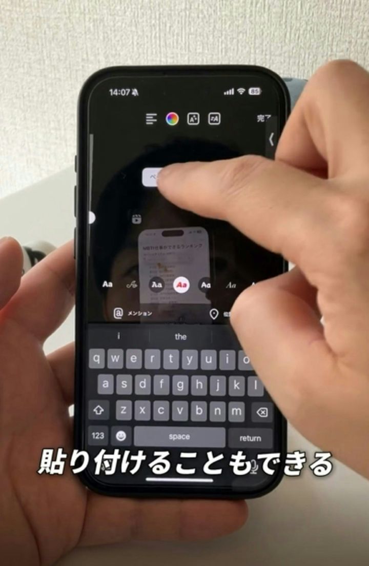 インスタグラムを開き、画面をタップしてペーストを選びます。