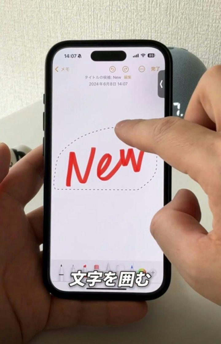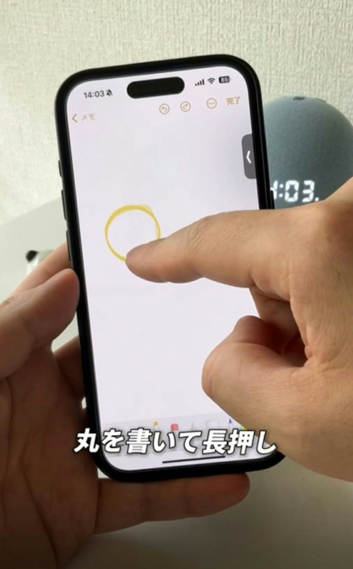 そのまま手書きで丸を描きます。その書いた丸を長押しします。