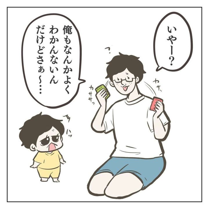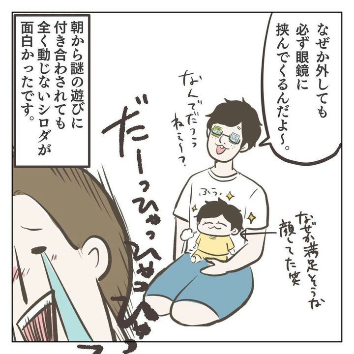 メガネにふりかけを挟むなんて斬新ですね。自分の夫がそんな姿で子どもと遊んでいるなんて、想像しただけで笑ってしまいます。