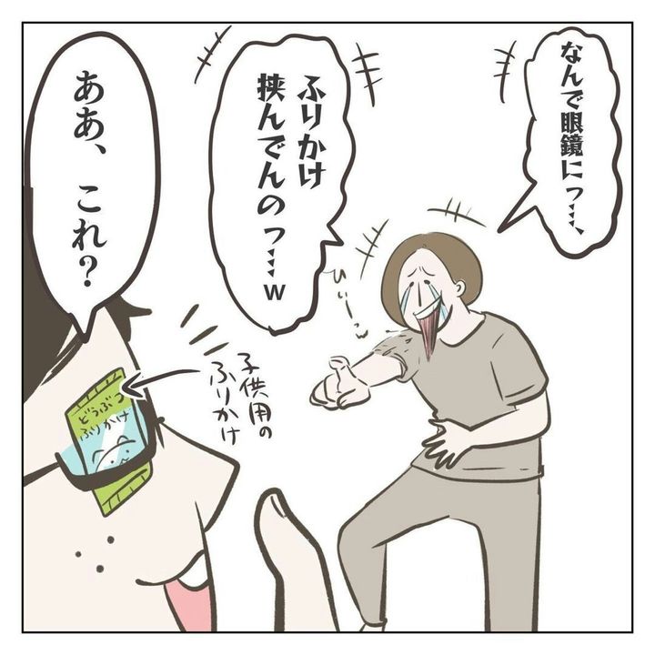 見た瞬間笑いが止まらない「眼鏡にふりかけ」息子と夫の変な遊び