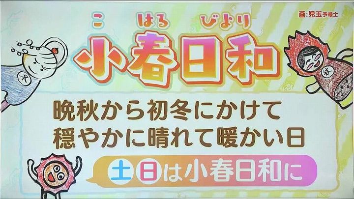 春という文字があるので、ややこしいですが、「まるで春のような日和」ということで、晩秋から初冬、今の時季の、晴れて暖かい日をさします。まさにこの土日は、小春日和になりそうですよ。