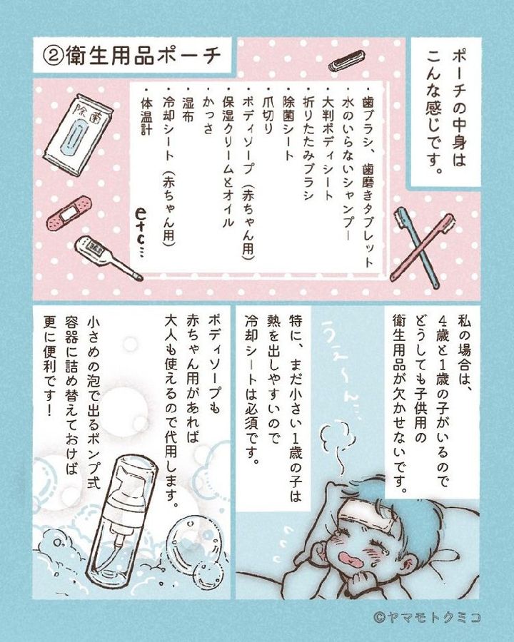 ヤマモトさんの場合、1歳の子どもが熱を出しやすいため、冷却シートが必須。