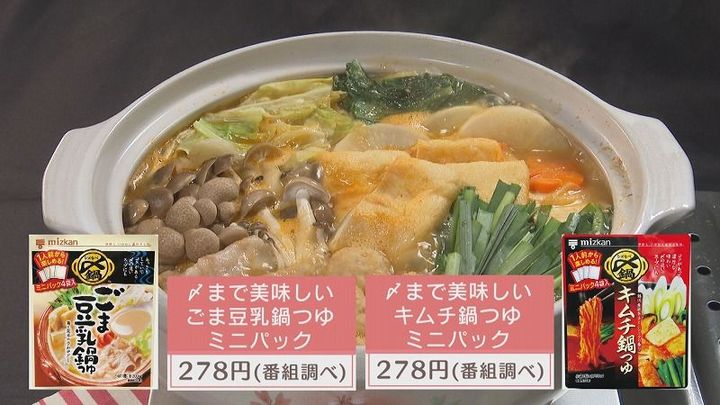 〆まで美味しい ごま豆乳鍋つゆ ミニパック 278円(番組調べ)