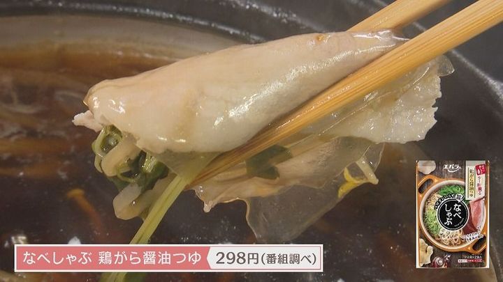 なべしゃぶ 鶏がら醤油つゆ 298円(番組調べ)